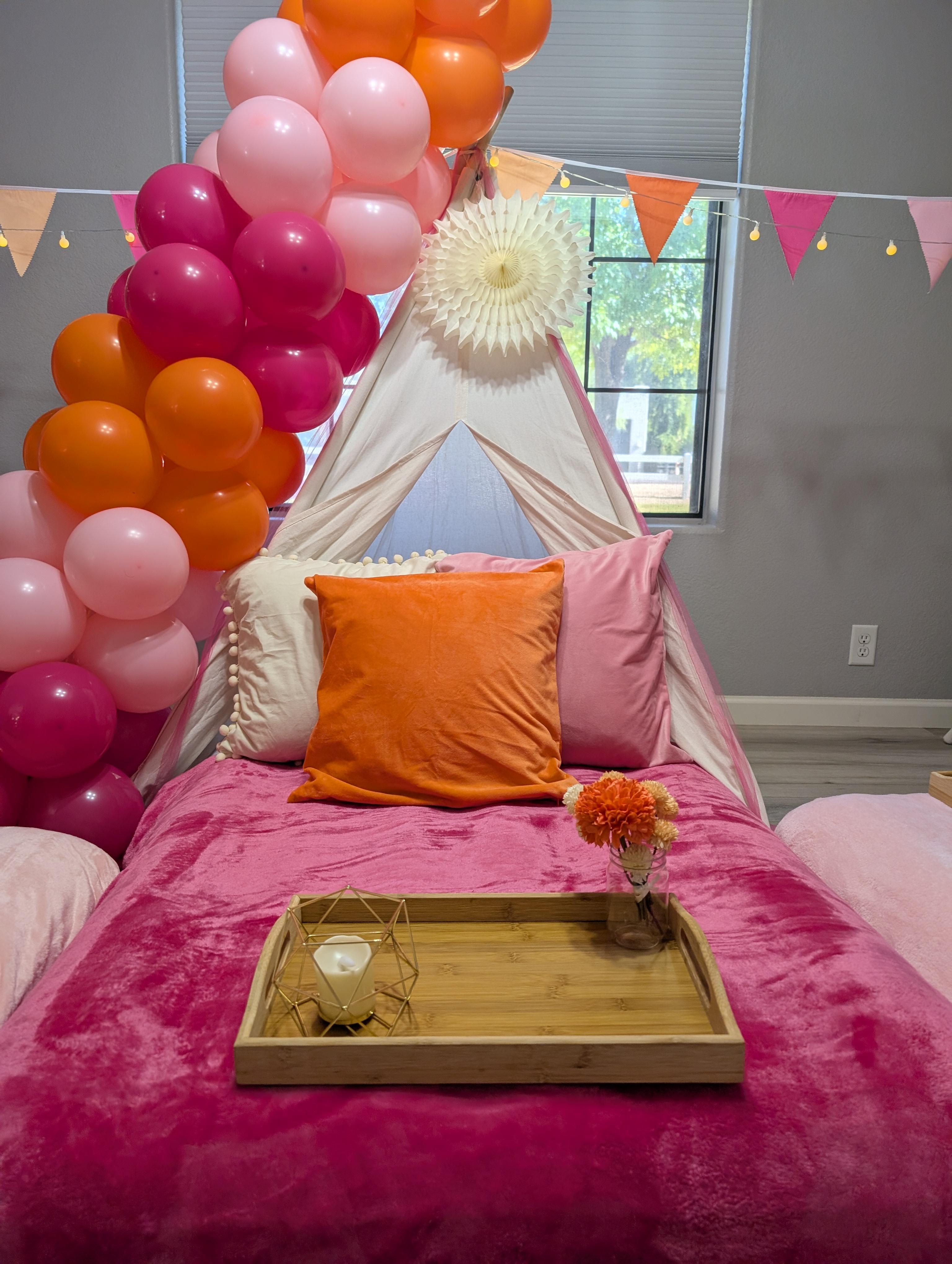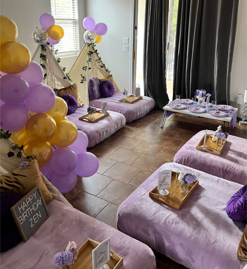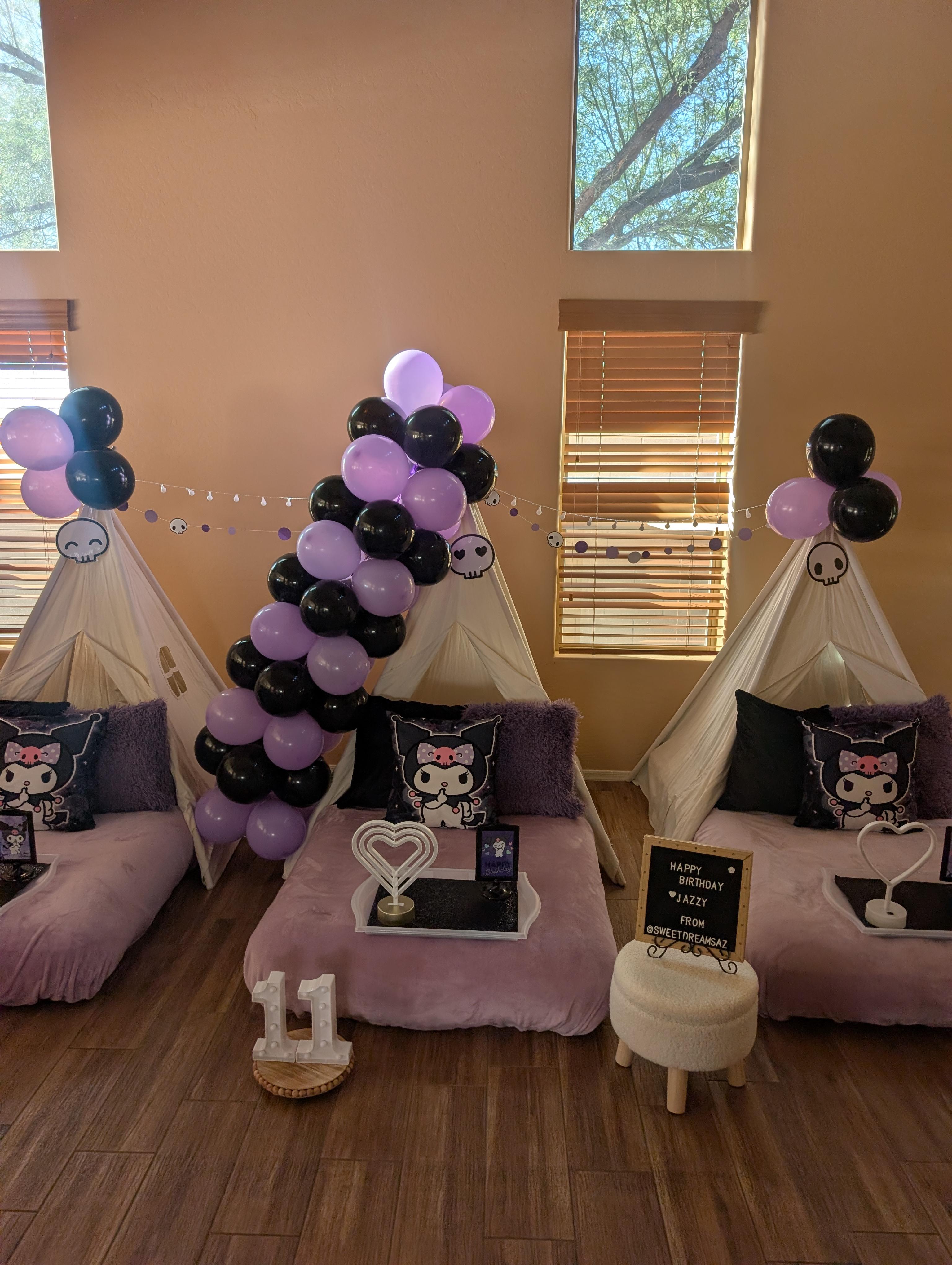 Table, Stools, Tablecloth, Flower, Placemats, Plushie set up